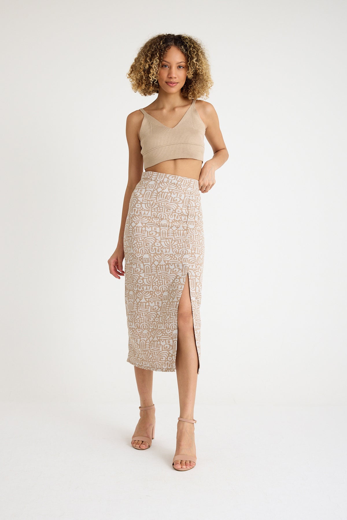 Doğal dokusu ve zarif tasarımıyla öne çıkan bu midi etek, hem günlük şıklık hem de rahat kullanım sunar. %65 keten ve %35 pamuk karışımlı kumaştan üretilmiştir; bu sayede hem ketenin doğal ve serinletici yapısını hem de pamuğun yumuşaklığını bir arada barındırır.