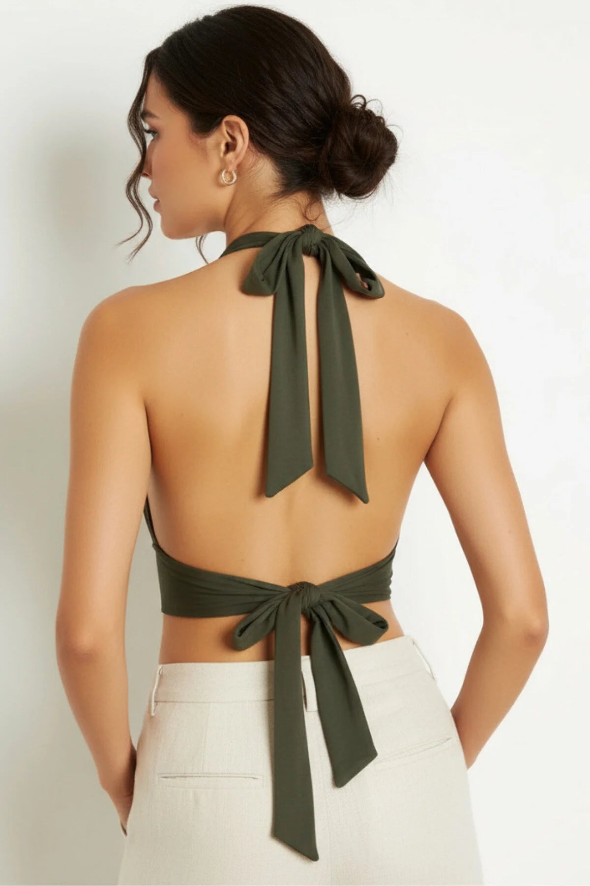 Viskonlu kumaştan üretilen boyundan ve sırttan bağlamalı crop modeli, şıklığı ve konforu bir arada sunuyor. Yüksek kaliteli kumaşı ve çift katlı tasarımı sayesinde hem dayanıklı hem de vücuda hoş bir şekilde oturan yapıya sahiptir. Yumuşak dokusu sayesinde gün boyu konforlu kullanım imkânı verir.
