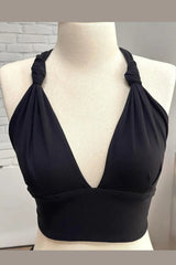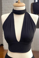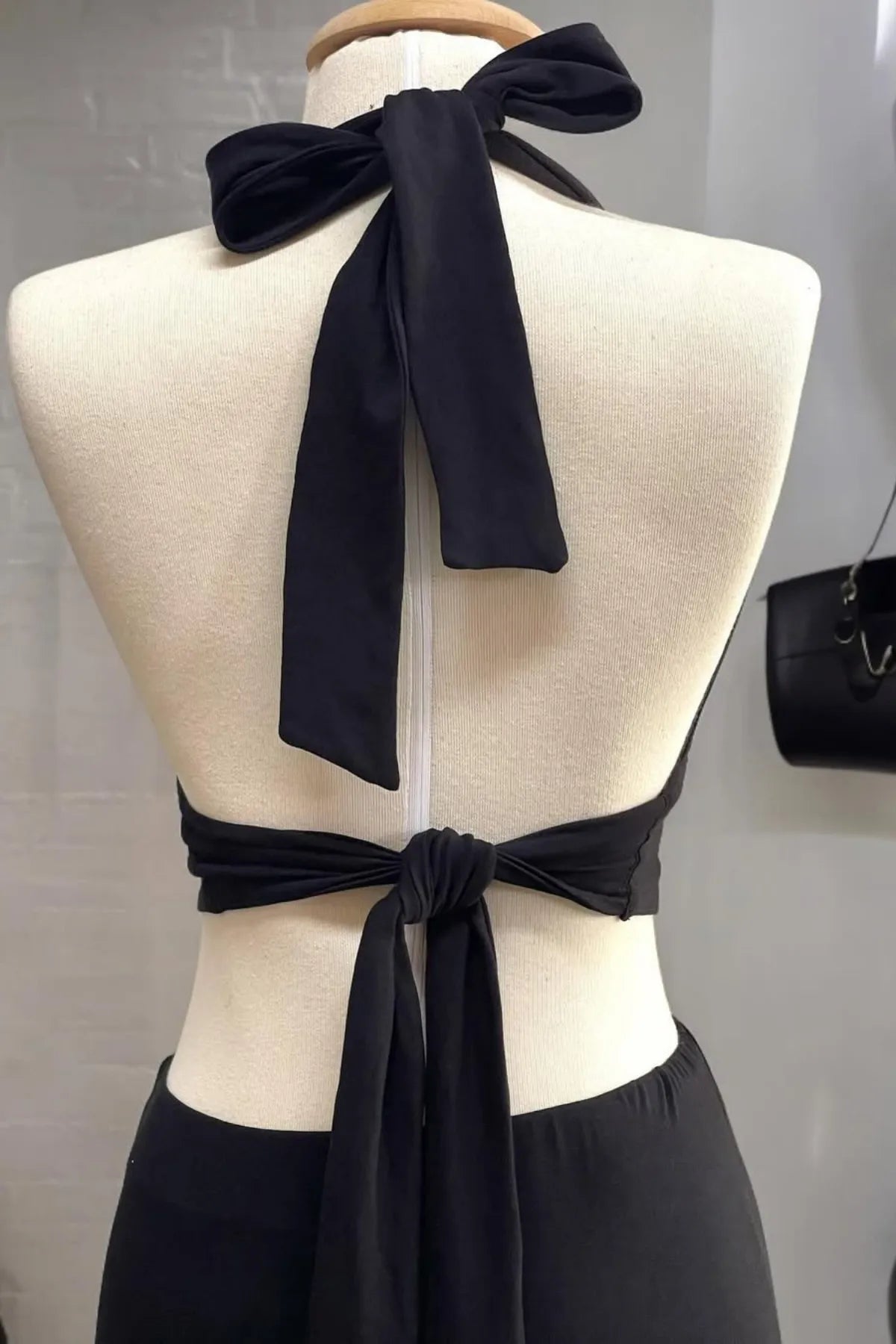 Vizkon Kumaş Yumuşak Dokulu Kadın Siyah Sırt Ve Boyun Bağlamalı Bluz
